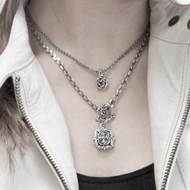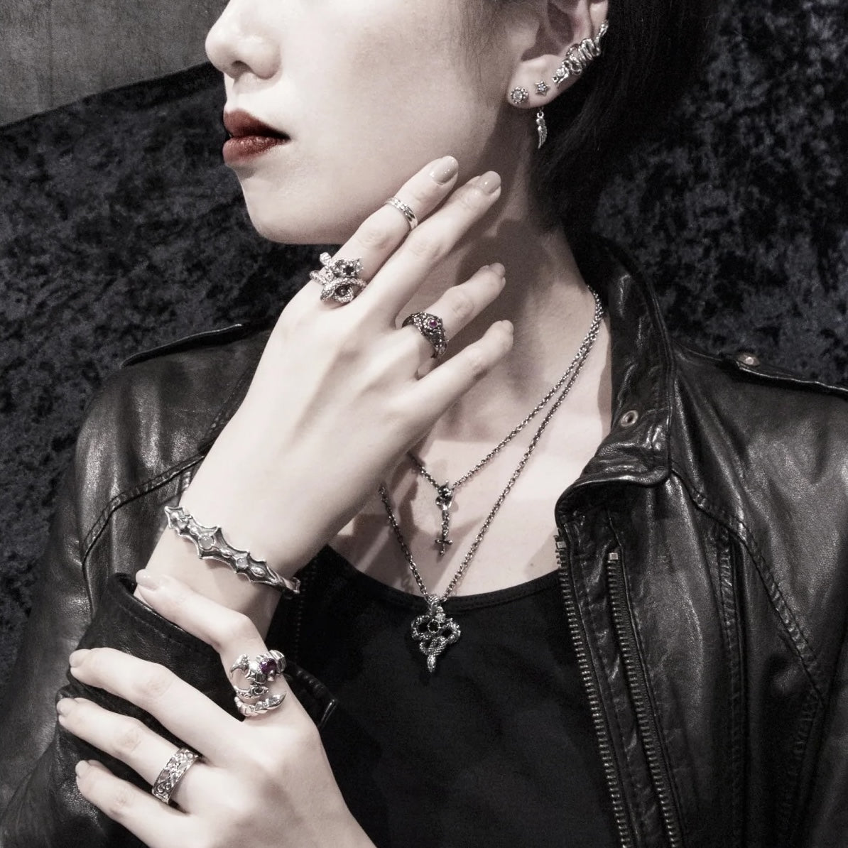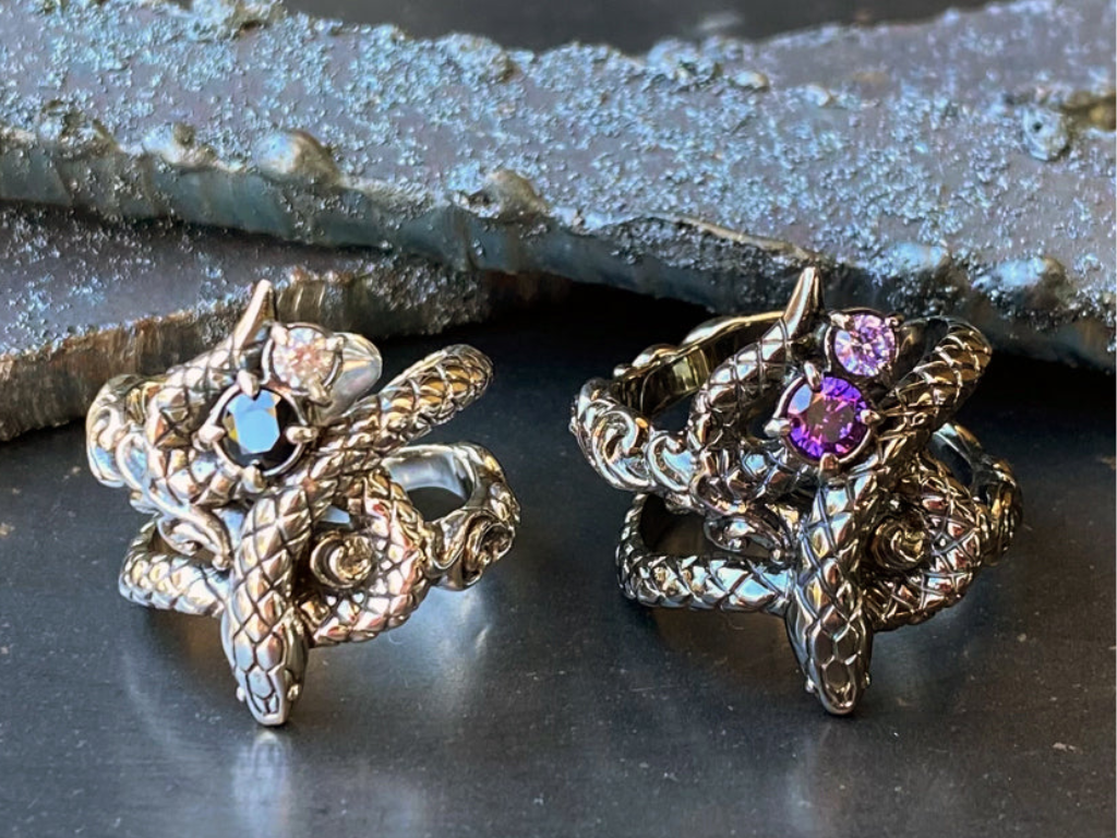 シルバーと異素材の組み合わせや、架空の生物をデザインに用いたりする斬新な発想と、細部のディティールにまでこだわるデザインワークが特徴。